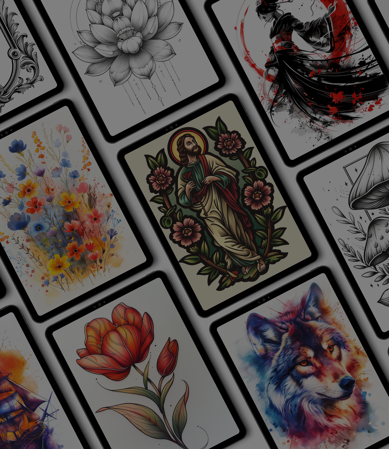 Das Pro-Designs Ultimate Bundle enthält 50 Tattoo-Design-Pakete und bietet Tätowierern eine beispiellose Auswahl an Stilen. Diese Sammlung reicht von kräftigen traditionellen Designs bis hin zu komplizierten Fine-Line- und minimalistischen Stilen und stellt sicher, dass jeder Tätowierer über die Werkzeuge verfügt, die er zum Erstellen atemberaubender Tattoos in professioneller Qualität benötigt.