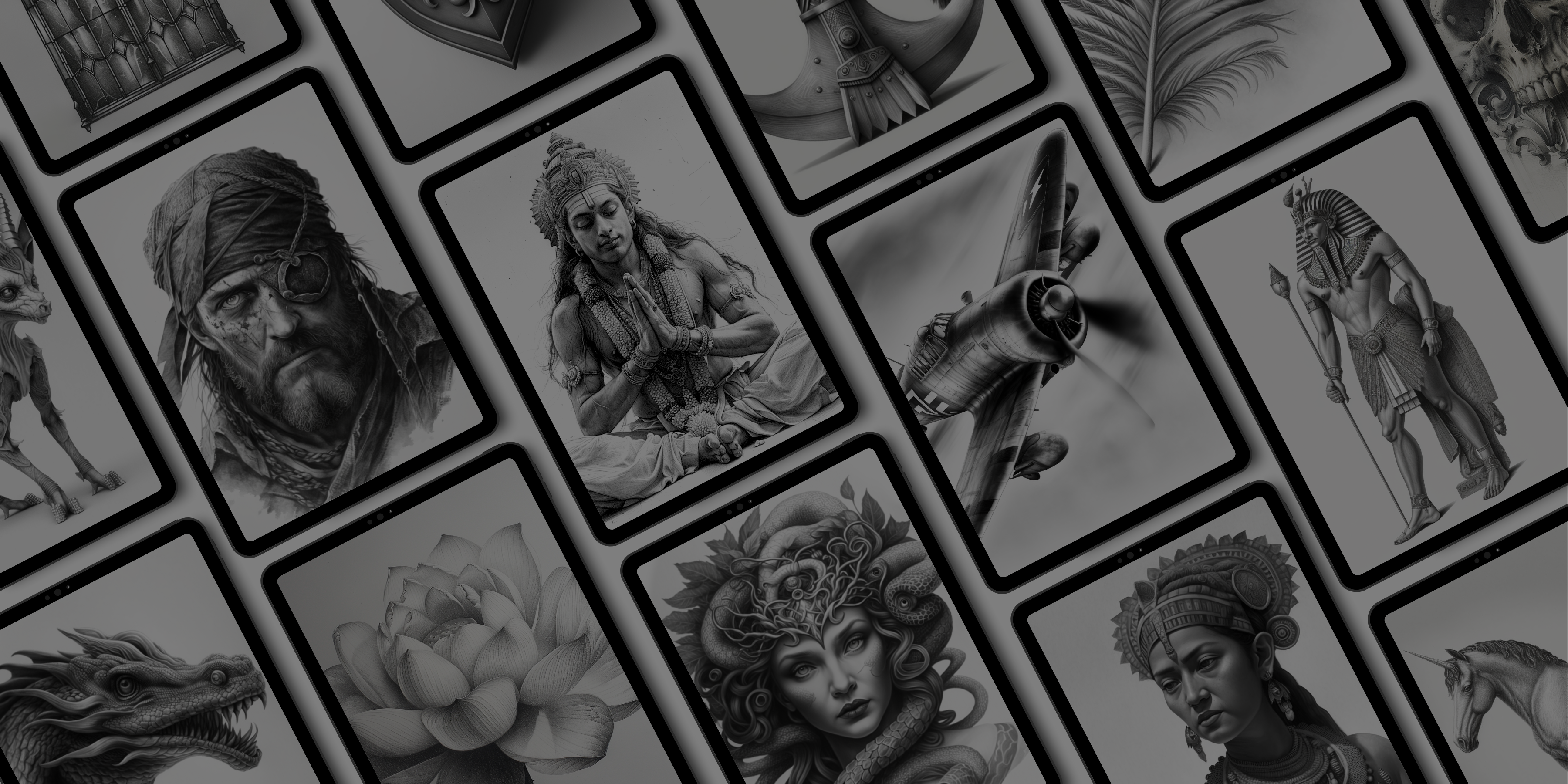 Dies ist das einzige Designpaket, das Sie jemals brauchen werden. Egal, ob Sie sich auf Tattoo-Designs oder Referenzkunst spezialisiert haben, diese Sammlung deckt jeden erdenklichen künstlerischen Stil und jedes erdenkliche Thema ab. Von kräftigen traditionellen Tattoos bis hin zu zarten Feinliniendesigns, von Tieren und Natur bis hin zu himmlischen Symbolen und Mythologie finden Sie Inspiration für jedes kreative Projekt.