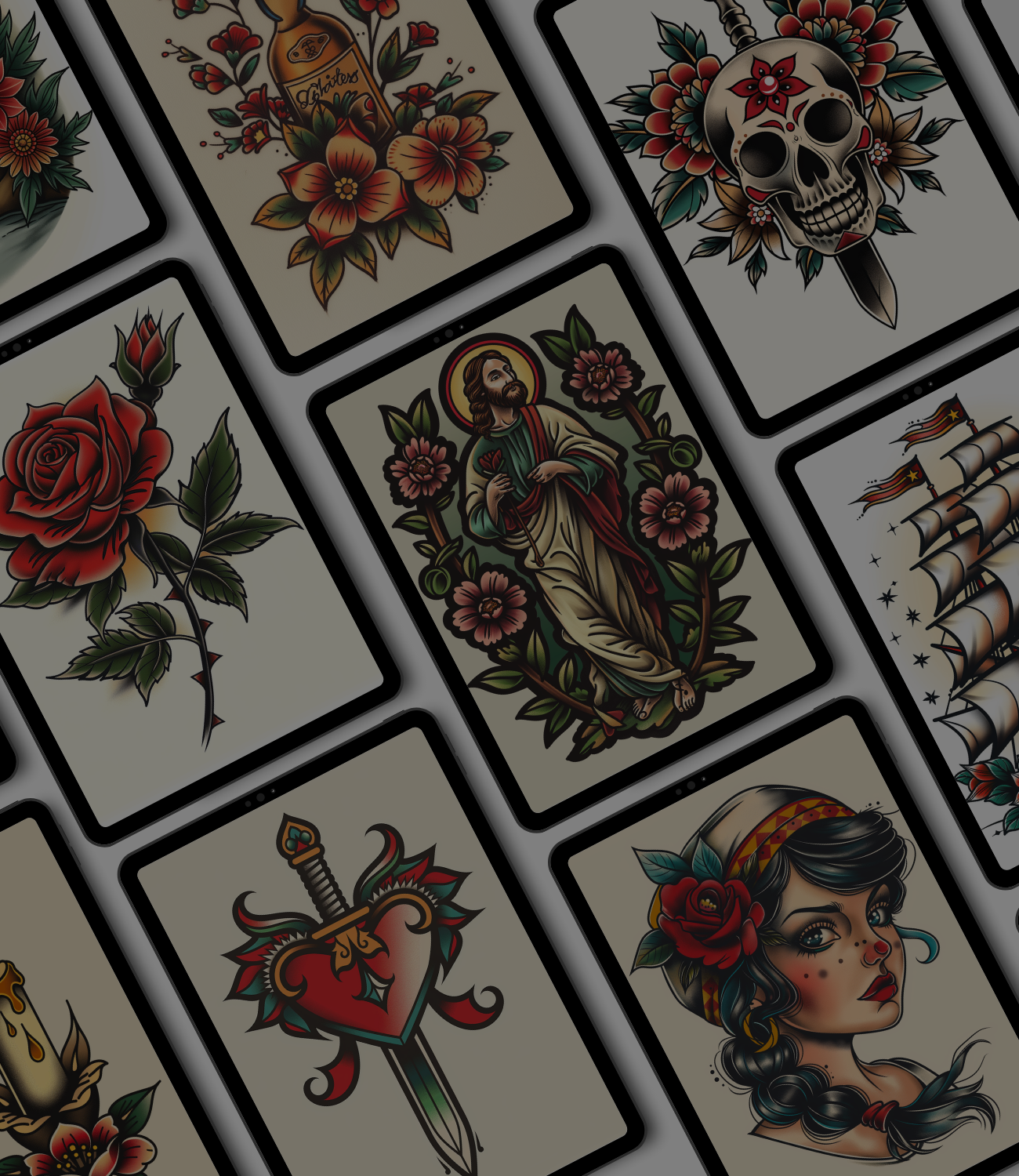- 1.000 hochauflösende Designs : Jedes Design wird von professionellen Tätowierern entworfen, um scharfe, klare Linien und kräftige, traditionelle Stile zu gewährleisten.
