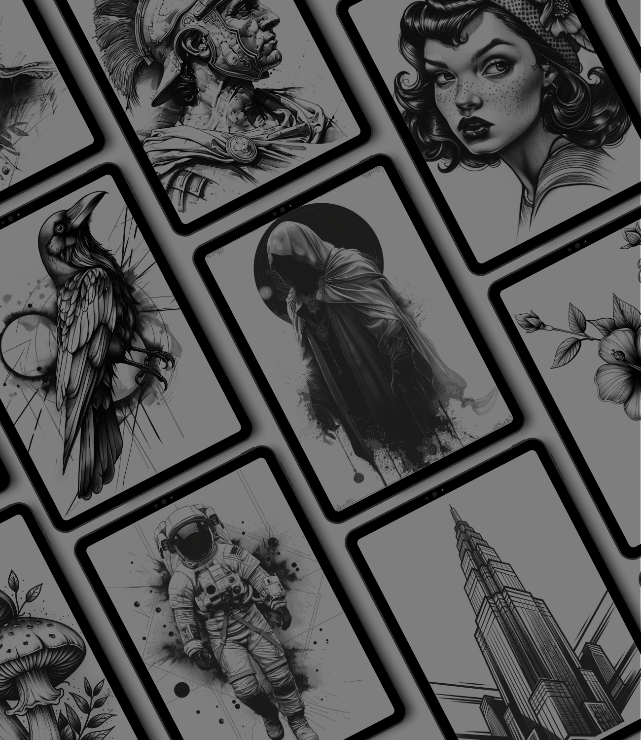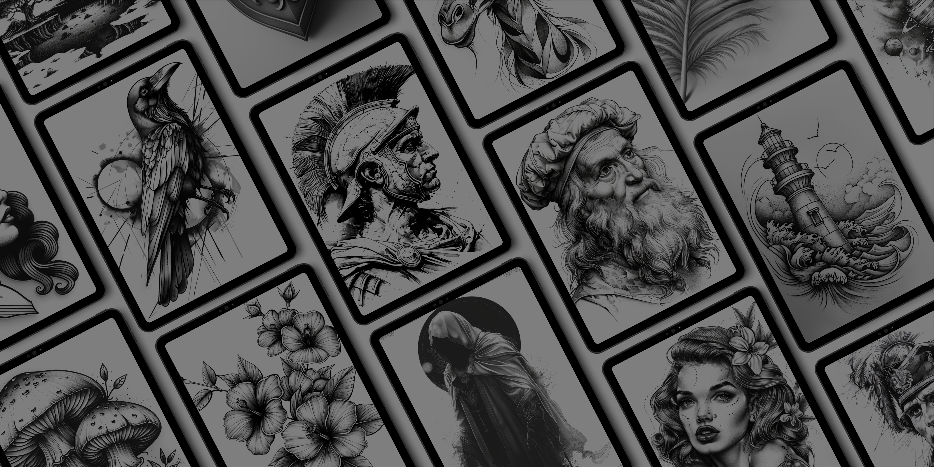 - 1000 diseños de alta resolución : cada diseño se elabora meticulosamente para garantizar líneas audaces y limpias y detalles intrincados que son perfectos para el arte del tatuaje Blackwork.