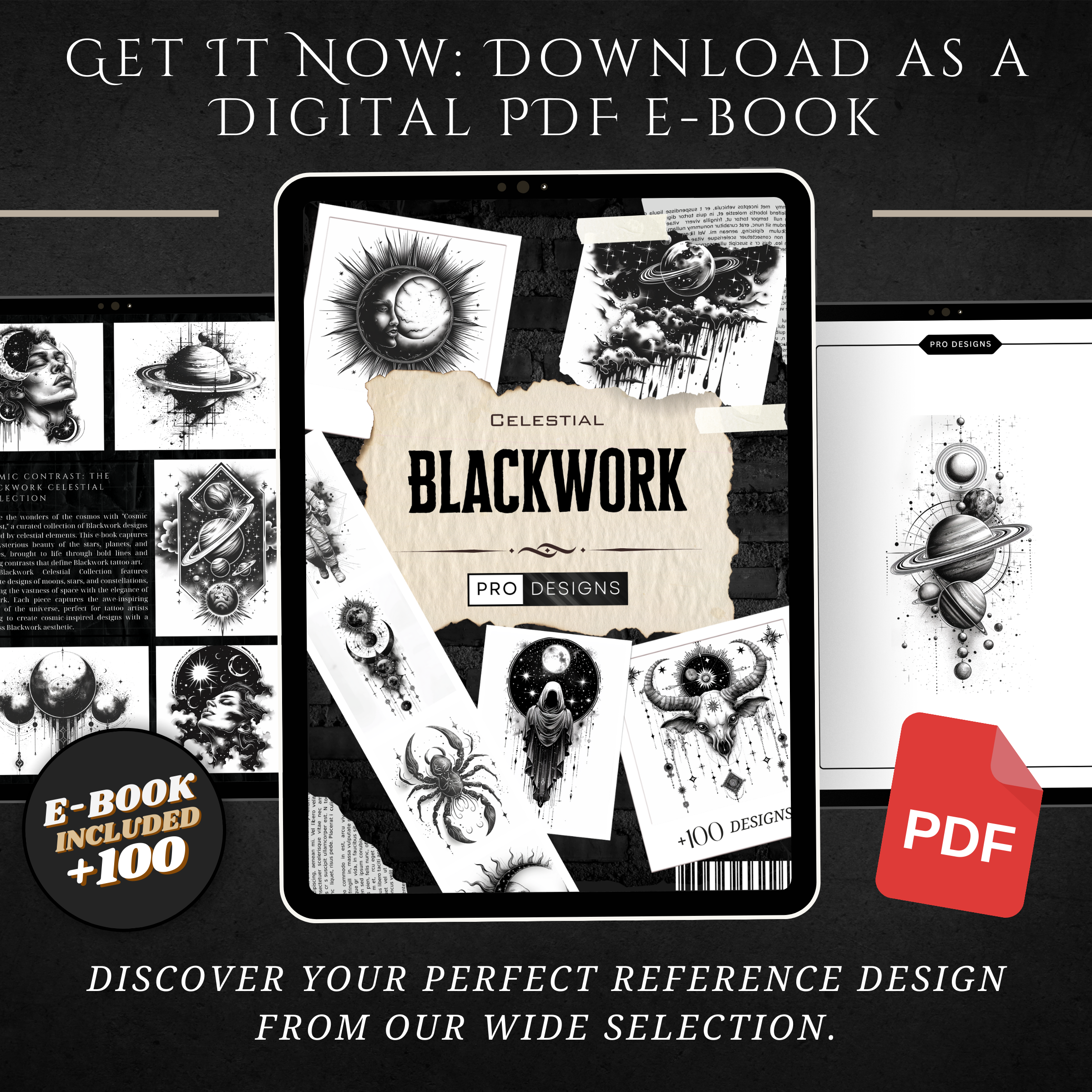 Explore the mysteries of the universe with the "Blackwork Celestial" tattoo design pack. Featuring 100 stunning blackwork designs, this collection captures the beauty and wonder of celestial bodies, perfect for tattoo artists looking to bring cosmic elegance to their work.
