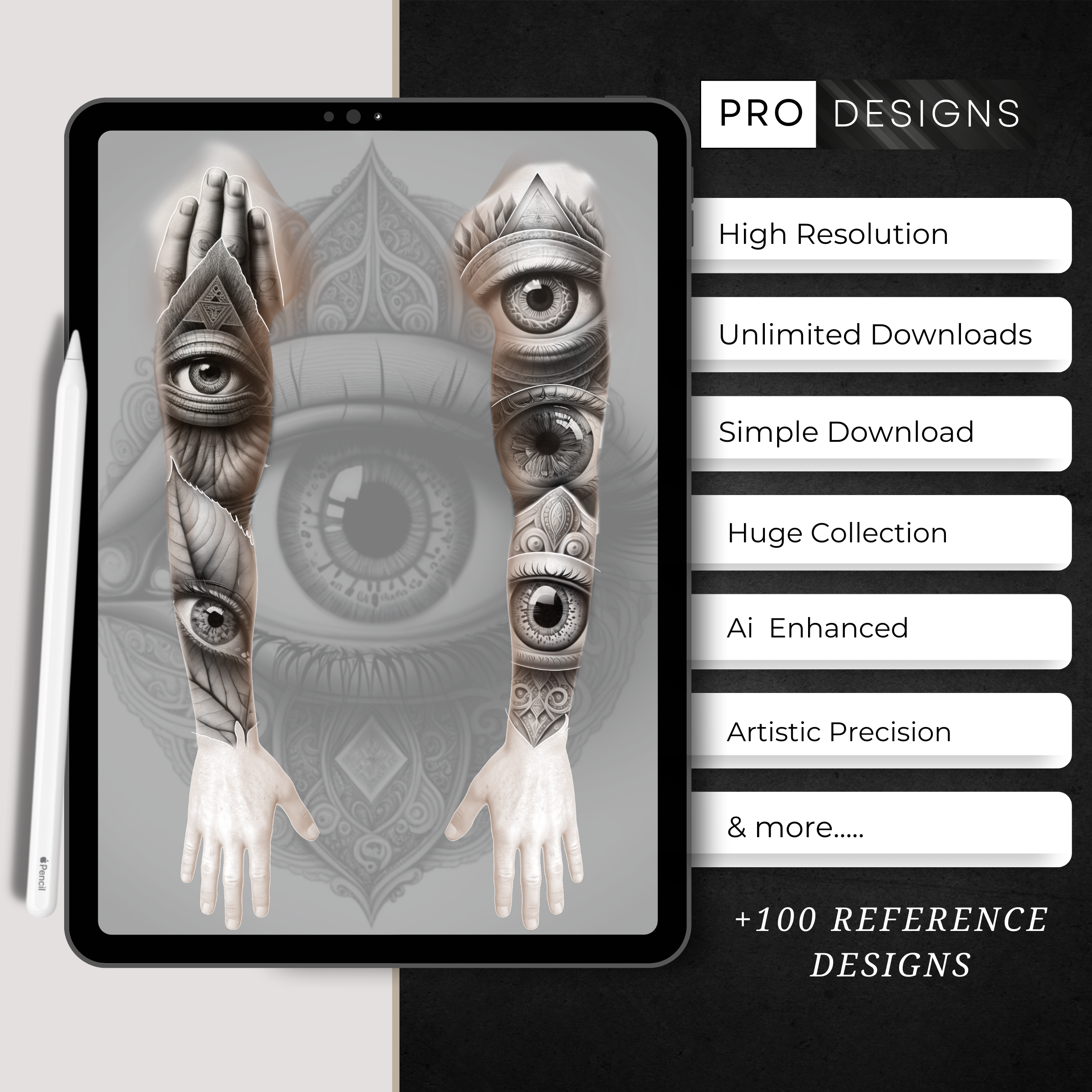 The Pro-Designs Ultimate Bundle offers an expansive collection of 90 Reference Design Packs, providing artists with a vast library of realistic, high-quality designs across multiple themes. Whether you’re looking for lifelike inspiration for custom tattoo designs or need reference material for digital art projects, this bundle has everything you need. Each design is meticulously crafted to offer detailed and accurate visual aids that suit various artistic styles.