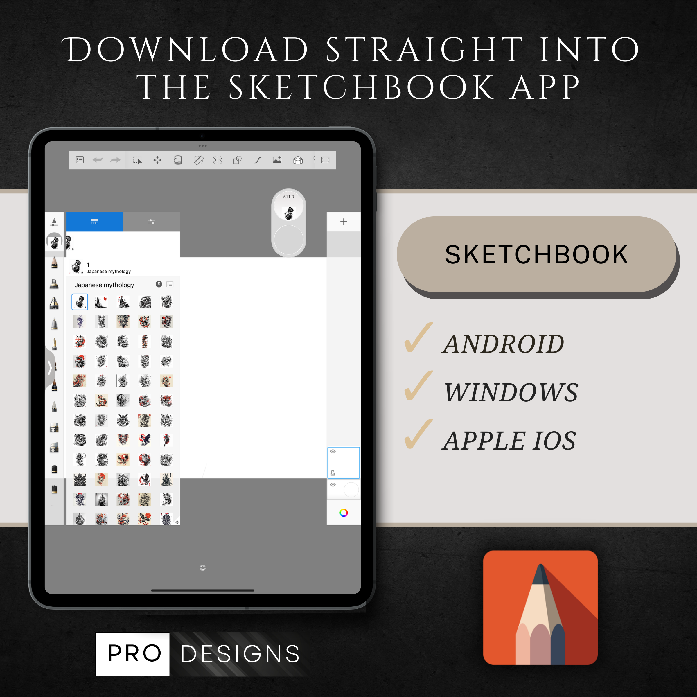 Seamless Workflow: Available in Procreate, Sketchbook, PDF e-book, and PNG formats, these designs are easy to integrate into your digital tattooing process, allowing you to create detailed, mythology-inspired tattoos effortlessly.