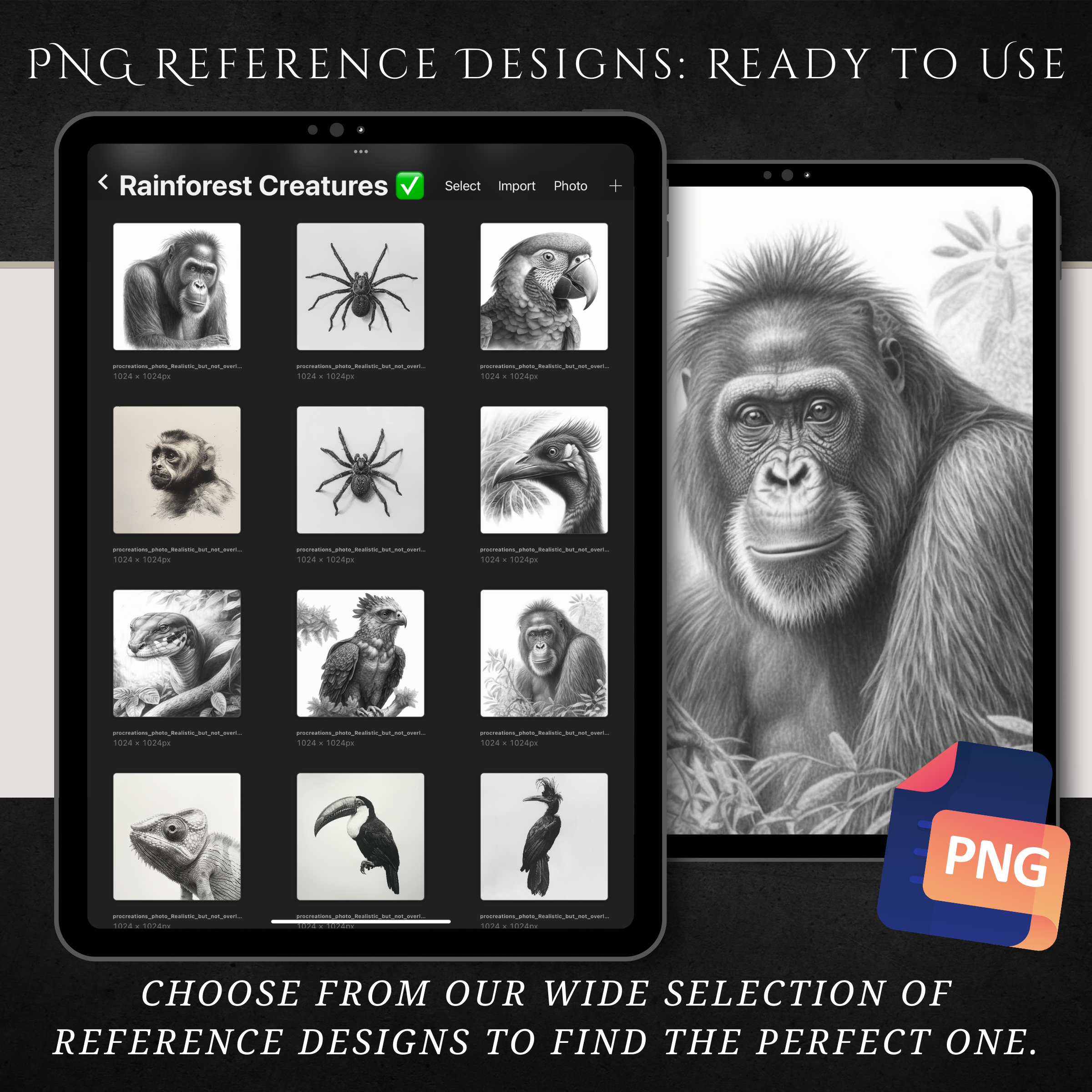 Inspiration for the Nature-Loving Artist: Whether you're designing a tattoo that reflects the vibrancy of rainforest life or creating digital art with a natural twist, "Rainforest Creatures" offers the perfect blend of exoticism and detail.