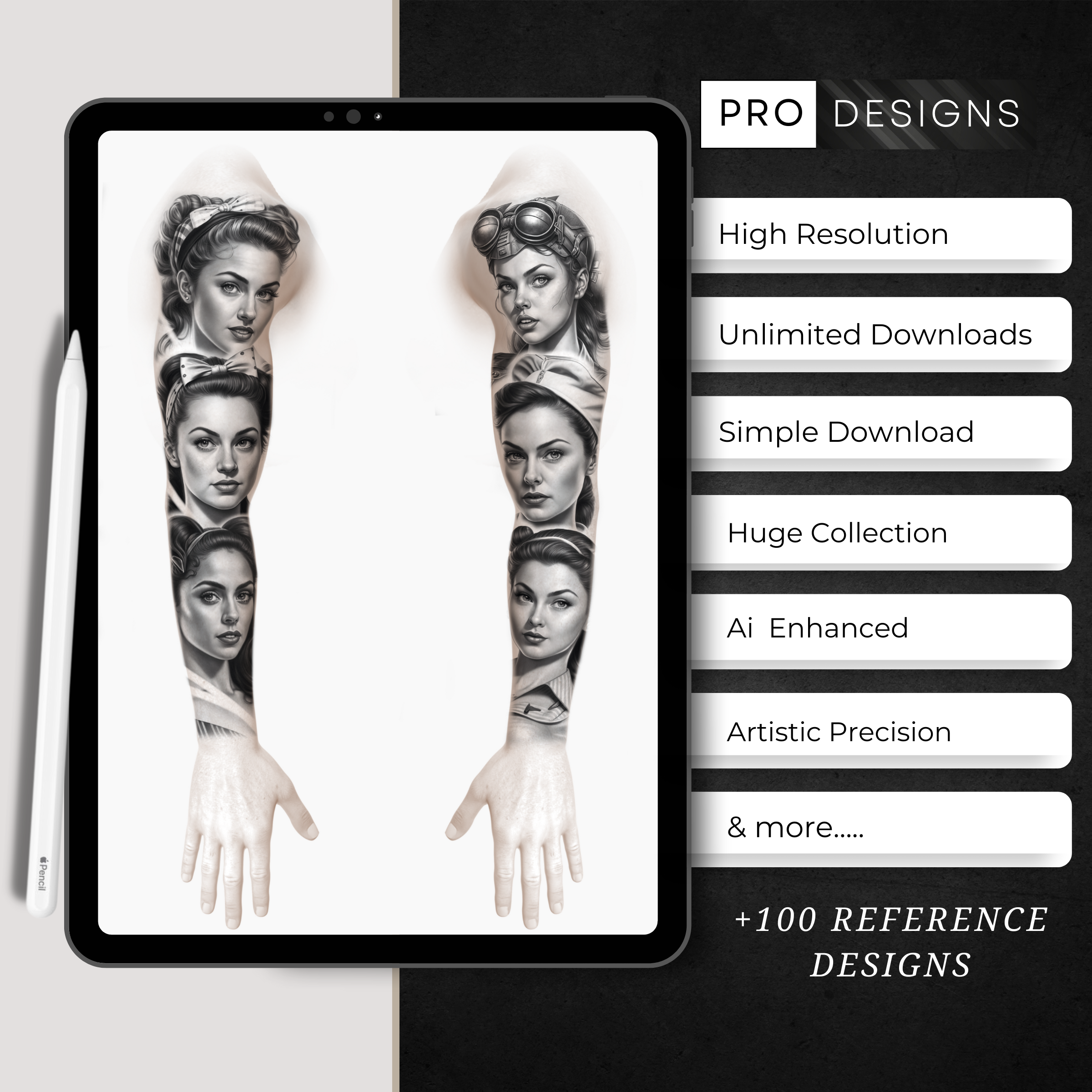 The Pro-Designs Ultimate Bundle offers an expansive collection of 90 Reference Design Packs, providing artists with a vast library of realistic, high-quality designs across multiple themes. Whether you’re looking for lifelike inspiration for custom tattoo designs or need reference material for digital art projects, this bundle has everything you need. Each design is meticulously crafted to offer detailed and accurate visual aids that suit various artistic styles.