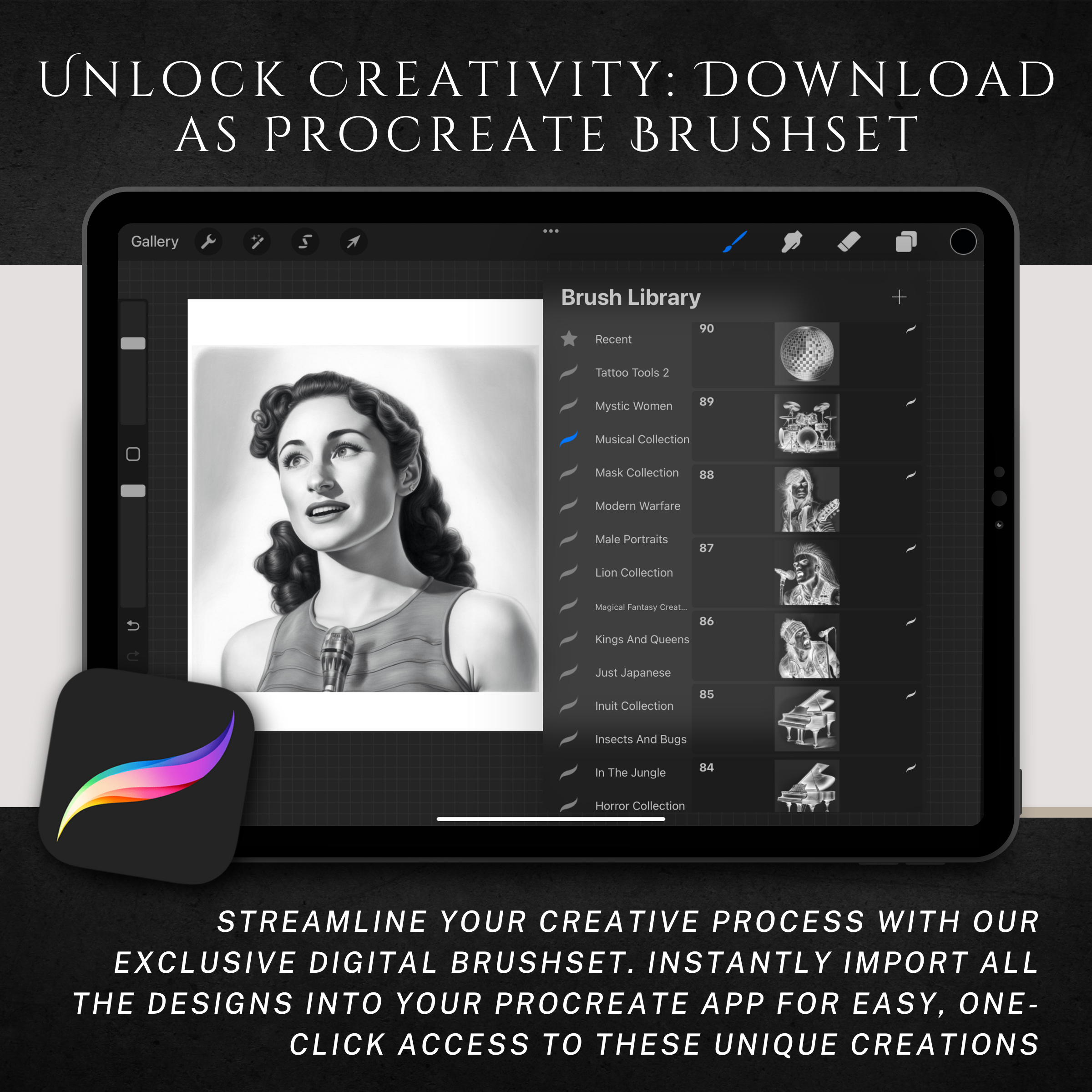 Each design can be imported directly into both Procreate and Sketchbook as Brush-Sets, making it incredibly easy to start working on your tattoo designs immediately. No extra steps, just smooth functionality.